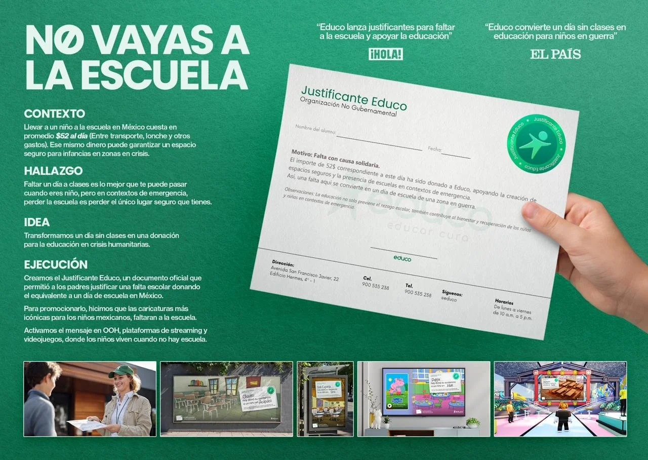 Así nació No vayas a la escuela: por $52 MXN (lo que cuesta un día de escuela en México entre transporte y lunch), los papás donaban y recibían un permiso oficial para que sus hijos faltaran. Convertimos una falta escolar en recaudación inmediata.